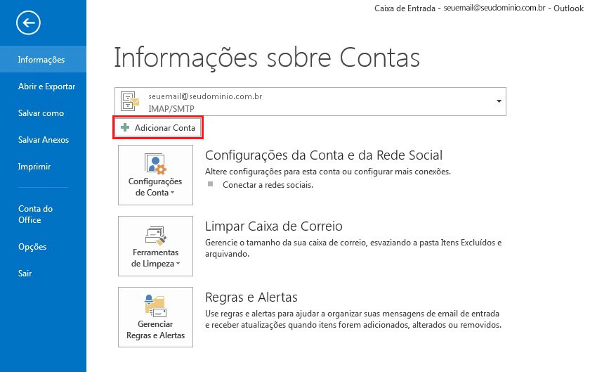 - Endereço de e-mail: seu e-mail completo (Ex: seuemail@seudominio.com.br)