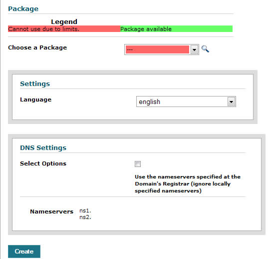 Choose a Package: Escolha o plano de hospedagem (clique aqui para ver como criar um plano de hospedagem)